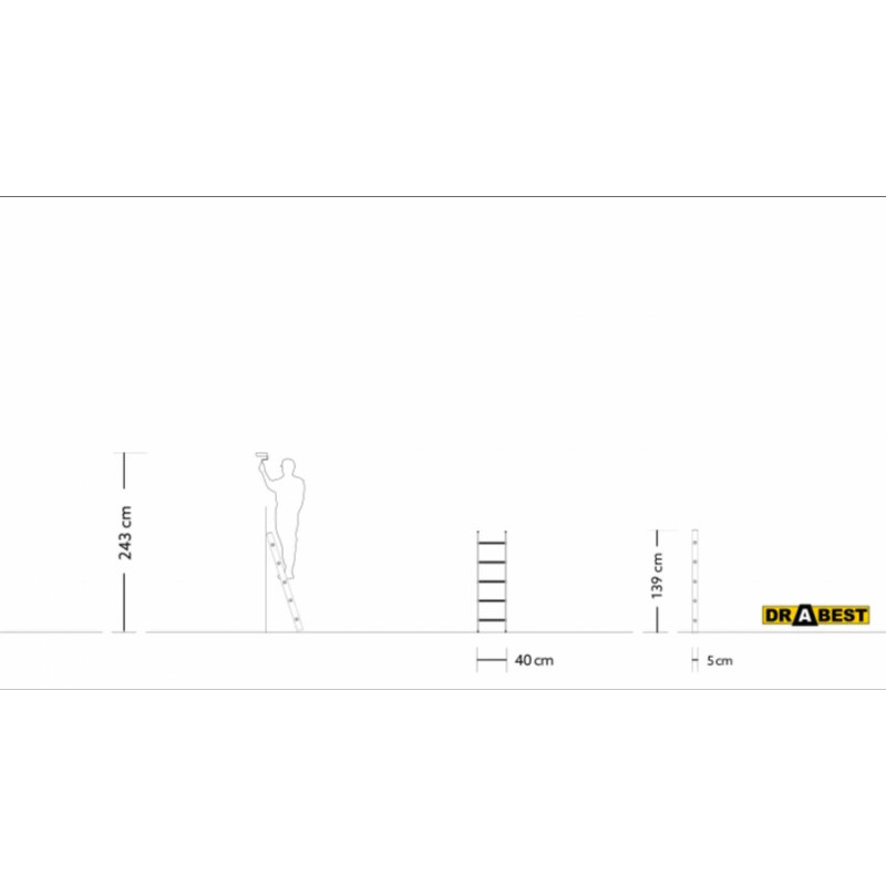 Drabest PRO alumīnija kāpnes, 5 pakāpieni, 150 kg