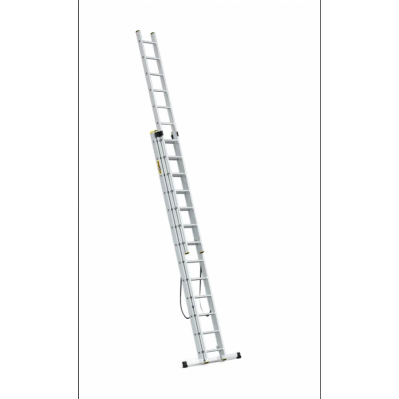 Spēcīgas stīgas ar profilu 82x25mm Iespēja pagarināt kāpnes slīpā, brīvi stāvošā stāvoklī un ar izbīdītu trešo elementu Neslīdošas kompresijas pēdas Uzlabots stabilizators ir piestiprināts ar 1200 mm garām skrūvēm Presēti pakāpieni ar profilu 28 x 28mm Papildu buferi atvieglo kāpņu novietošanu brīvi stāvošā stāvoklī Izturīgi āķi un automātiskās slēdzenes garantē pilnīgu kāpņu stabilitāti Atbilstība EN 131 standartam TÜV Rheinland drošības sertifikāts Iespēja pagarināt kāpnes uz kāpnēm BEZMAKSAS PAKARAIS!
