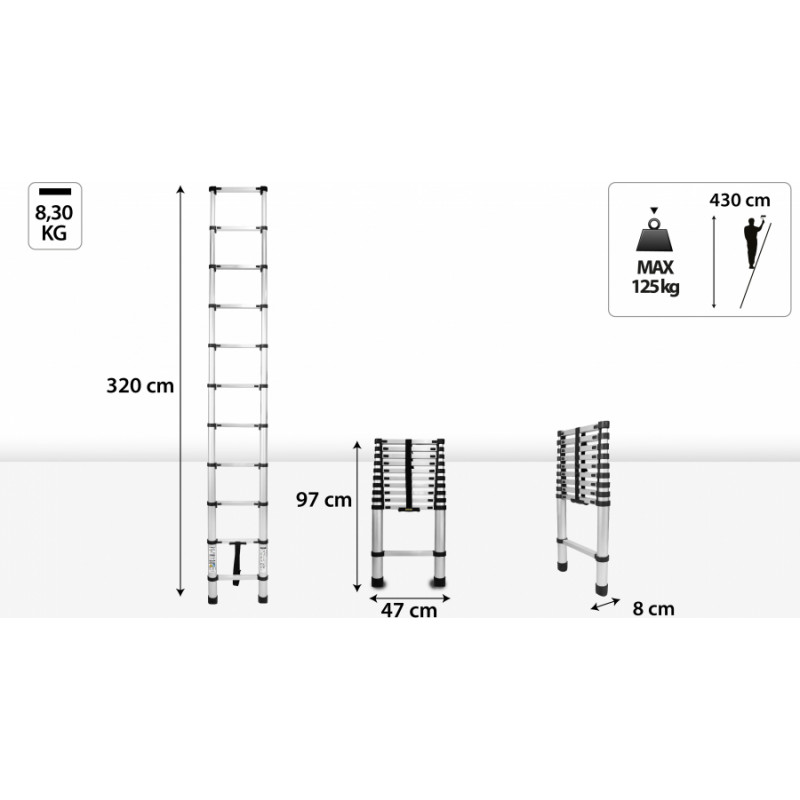 Drabest Teleskopiskās tērauda kāpnes DRABEST 1x11 3,2 m