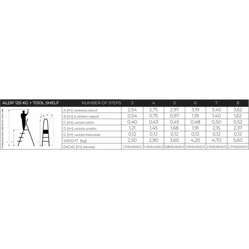 Jūsu iepirkumu grozs ir tukšs! Drabest Mājas kāpnes HOME DRABEST ALD6 vienpusējas, 6 pakāpieni, melnas,125