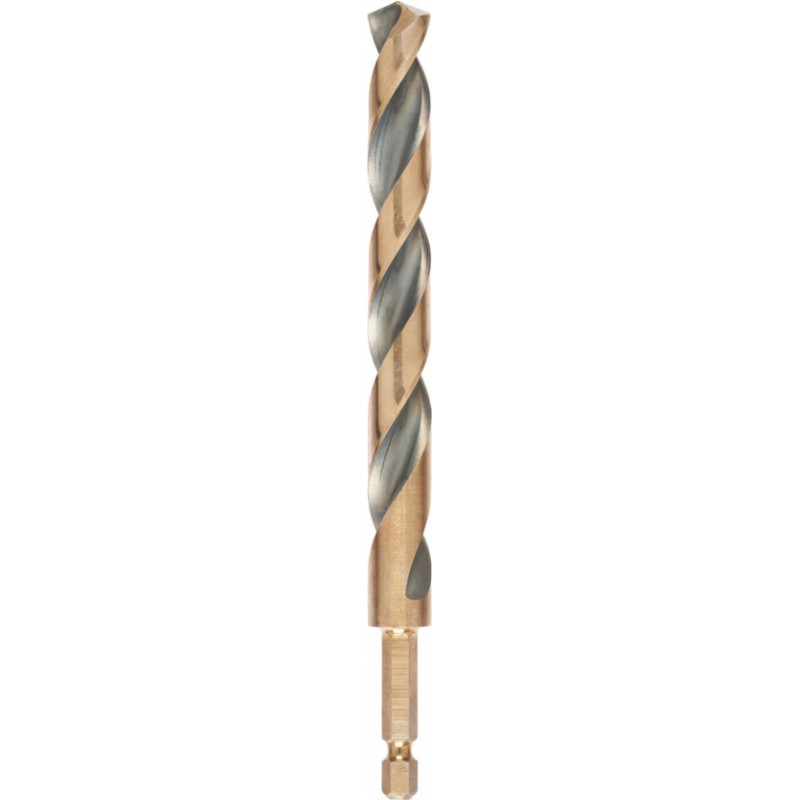 • Melns un zelta pārklājums – aizsardzībai pret rūsu • 135° uzasinājums – novērš slīdēšanu urbšanas sākumā • Piemērots triecienskrūvgriežiem – 1/4" sešstūra kāts, izturīgs pret radiālo griezes momentu, savietojams ar lielāko daļu urbjmašīnu • Izturīga, koniska pinuma konstrukcija – nodrošina īpašu izturību un triecienizturību Piemērots urbšanai: • Tērauds • Dzelzs • Niķelis • Bronza • Koks • Plastmasa