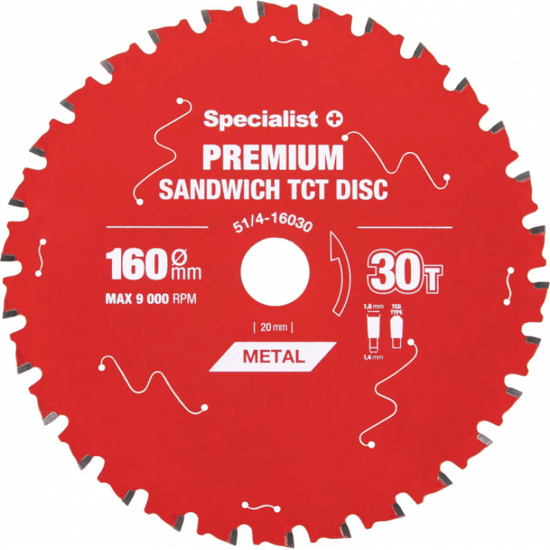 Sandwich – augstas kvalitātes TCT griešanas disks, paredzēts daudzslāņu sandwich paneļu un plānu metāla lokšņu griešanai. Plānāks disks nodrošina īpaši precīzu un tīru griezumu, padarot to ideāli piemērotu lietošanai ar akumulatora instrumentiem. Zobi: • TCG 0° tipa zobi – tīrs griezums un ilga veiktspēja darbā ar jauktiem materiāliem. • Rūpnieciskas kvalitātes karbīda zobi – ilgi saglabā asumu pat sarežģītos darba apstākļos. • Pretatgrūdiena zobi – drošākai griešanai Forma un konstrukcija: • Plānāks disks – tīrs, precīzs griezums ar mazākiem materiāla zudumiem. • Augstas kvalitātes rūdīts tērauds ar Teflona (PTFE) pārklājumu – samazina berzi un materiāla uzkrāšanos. • Pretvibrācijas iegriezumi – mazina vibrācijas un nodrošina vienmērīgu griešanu. • Paplašināšanās atveres – efektīva siltuma kontrole un ilgāks diska kalpošanas laiks. Lietojamais rīks: • Rokas akumulatora ripzāģiem. Griežamie materiāli: • Daudzslāņu sandwich paneļi, plānas metāla loksnes.
