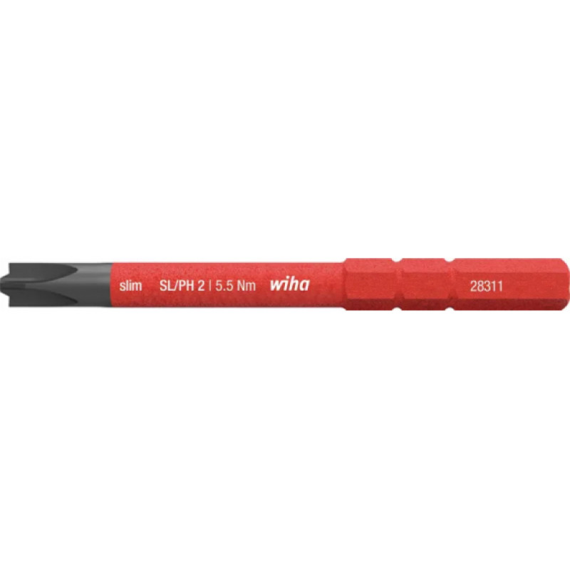 Parasto elektrisko skrūvgriežu asmeņu diametrs bieži vien ir pārāk liels, lai aizsniegtu zemu novietotas skrūves. Tā kā izolācijas noņemšana nav atļauta un rada drošības risku lietotājam, izmantojot Wiha slimTECHNOLOGY, asmeņos ir integrēta aizsargizolācija. Tā ir īpaši izstrādāta elektroiekārtām, padarot asmeņus līdz pat 33% plānākus. Tas nozīmē, ka ar slimBits var viegli aizsniegt pat zemu novietotus skrūvju un atsperu elementus. Izolētie slimBits tiek pārbaudīti individuāli saskaņā ar starptautisko standartu IEC 60900, *nodrošinot lietotājiem instrumentu drošam darbam ar spriegumam vadošām detaļām līdz 1000 V maiņstrāvai. 6 mm slimBits var izmantot tikai ar slimVario® uzgaļu turētāju un slimTorque VDE uzgaļu turētāju (VDE griezes momenta sistēma).