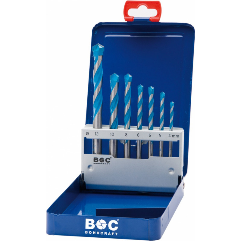 Bohrcraft daudzfunkcionālais urbju komplekts TCT metāla korpusā, 7 gab. 4 / 5 / 6 / 6 / 8 / 10 / 12 mm