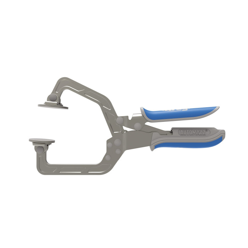 Ar Kreg Automaxx® Wood Project Clamp 76mm jūs varat ātri un viegli nofiksēt apstrādājamās detaļas ar perfektu fiksācijas spēku. Ideāli piemērots slīpo savienojumu šablona, kā arī daudzu citu apstrādājamo detaļu fiksēšanai, kur svarīgs ir augsts fiksācijas spēks. Kreg Automaxx® ātrajiem spīlēm ir lieli spiediena laukumi, kas vienmērīgi sadala spiediena spēku, nesabojājot trauslas apstrādājamās detaļas. Pateicoties Automaxx® automātiskās regulēšanas tehnoloģijai, Kreg spīles automātiski pielāgojas materiāla biezumam, vienkārši saspiežot rokturus – neatkarīgi no tā, vai materiāls ir biezs vai plāns. Vienkārši noregulējiet saspiešanas spiedienu, izmantojot īkšķskrūvi. Augstas kvalitātes, izturīgā pilnībā metāla Kreg spīles konstrukcija ir paredzēta vairāku gadu ilgai intensīvai lietošanai. Tiem ir arī ergonomiski, polsterēti rokturi komfortam un lietošanas ērtībai.