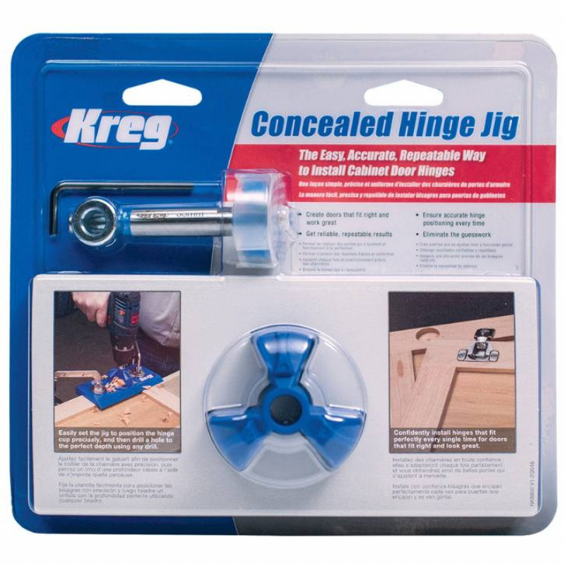 Ar slēpto eņģu šablonu Kreg KHI-HINGE skapīšu durvju uzstādīšana ir vienkārša! Precīzi un tīri, perfekti urbumi slēptām durvju eņģēm.